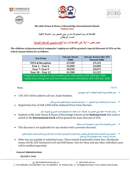 خصم خاص 25% على الأقساط الدراسية لأبناء منسوبي الشركات الدوائية ... قراءة المزيد